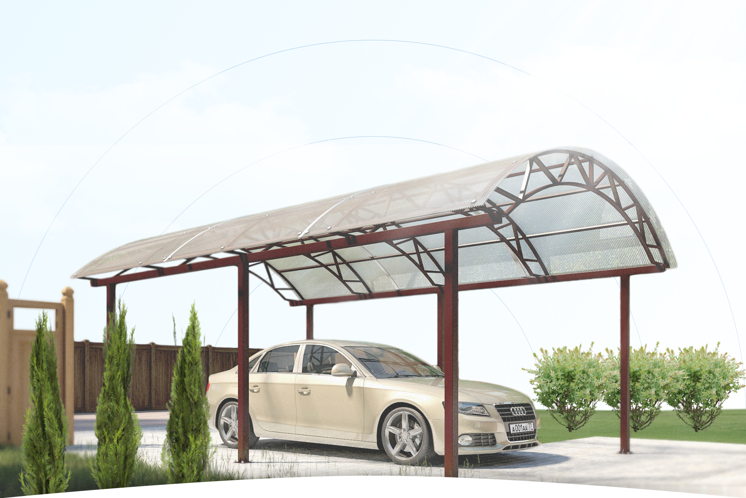 Оставьте заявку на 3D-проект Вашего навеса и посмотрите, как он будет выглядеть на Вашем участке